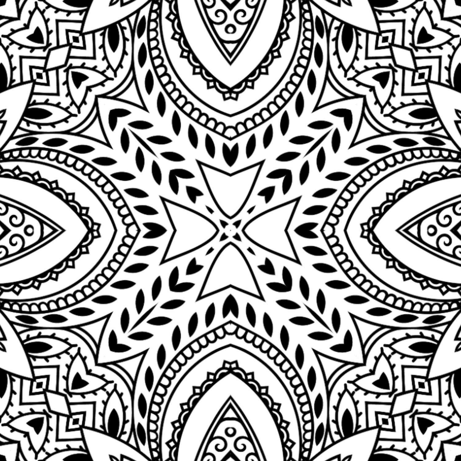 At its heart, a delicate cross-like formation is framed by flowing, almost petal-like forms, each adorned with a series of tiny, perfect dots, adding a tactile texture to the visual. This central theme expands outwards into layers of increasing complexity, each segment offering a new visual delight. Notice the way the repetitive patterns of tiny leaves create a dense, almost lace-like effect, providing a wonderful contrast to the broader, bolder outlines. This interplay of fine detail and larger shapes offers a varied coloring experience, allowing for both precise work and broader strokes of color.