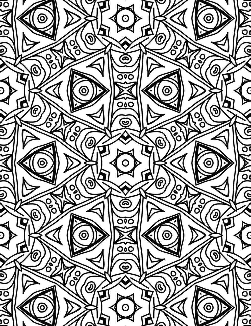 Step into a world of mystery with the Cosmic Eye Mandala, where bold triangular frames encase hypnotic circular motifs resembling celestial eyes. Rendered in stark black ink on a white canvas, this design pulses with an otherworldly vibe, its geometric precision softened by swirling accents and star-like details. The central eye-like pattern draws you in, surrounded by a lattice of sharp angles and rounded shapes that suggest a universe in motion. Each segment feels like a window to the cosmos, blending symmetry with an enigmatic charm that invites deeper contemplation.