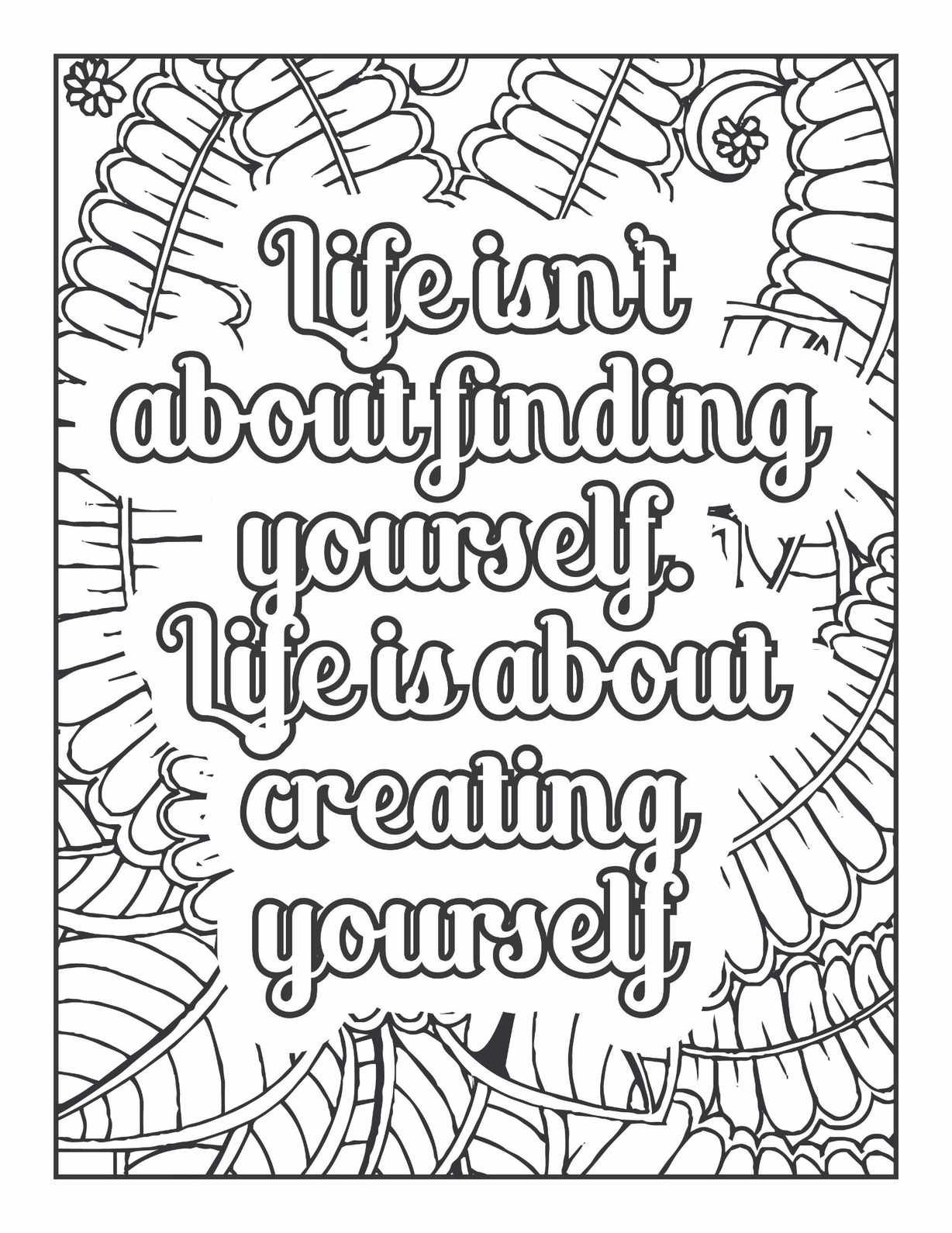 Embark on a journey of self-creation with our inspiring “Life Is About Creating Yourself” botanical coloring page. This profound quote challenges conventional wisdom, offering a liberating perspective that true fulfillment comes not from passively discovering a pre-existing self, but from actively shaping who you aspire to be. It’s a powerful affirmation for personal growth, resilience, and conscious living, inviting you to embrace your potential and design your own narrative.