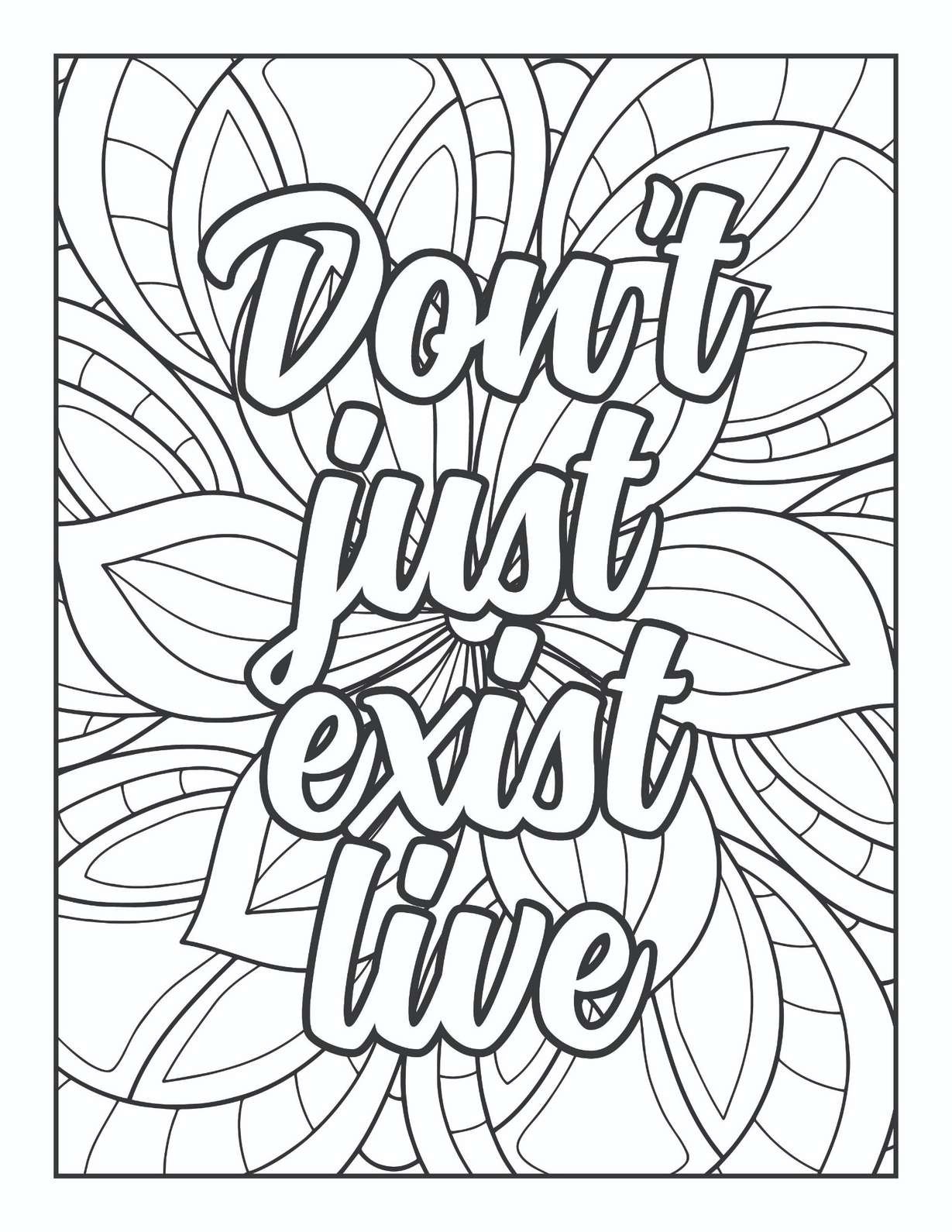 Engaging with the “Don’t Just Exist Live” mandala is a deeply personal and therapeutic journey. As your hands bring color to the intricate patterns, your mind can wander, contemplating what it means to truly live – to pursue passions, connect deeply, and experience joy. The rhythmic motion of coloring is renowned for its stress-reducing benefits, fostering mindfulness and allowing for a refreshing escape from daily pressures. This downloadable design is perfect for moments of self-reflection, a creative outlet after a busy day in Durgapur, or even as a shared activity to inspire friends and family. Download it today and let its profound message guide your hand and your spirit, transforming a simple outline into a vivid testament to a life lived with purpose and passion.