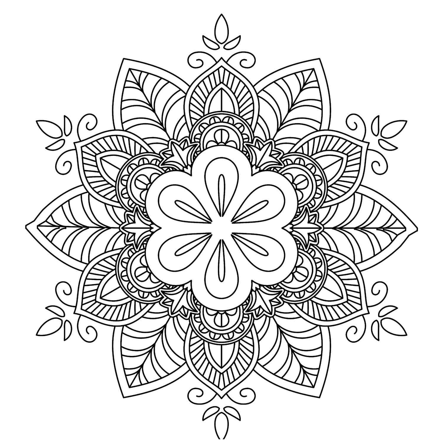 What makes this mandala particularly captivating are the subtle flourishes and decorative elements that emerge from the main structure. Delicate tendrils and abstract leaf-like forms curl outwards, softening the overall symmetry and adding an organic, flowing dimension. These smaller details offer wonderful opportunities for nuanced coloring, allowing you to experiment with fine lines, gradients, and contrasting hues to truly bring the design to life. The varied sizes and shapes of the different sections provide a delightful challenge, inviting both broad strokes and meticulous precision.