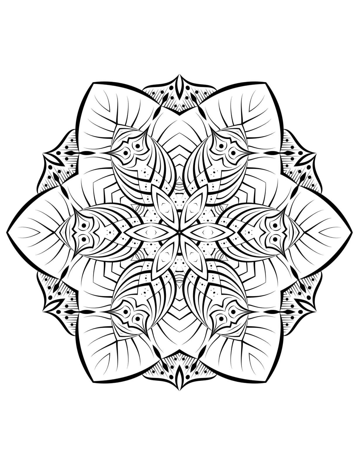 The design’s inherent elegance comes from its harmonious balance of bolder outlines and the finer, more detailed ornamentation within. This interplay creates a captivating visual rhythm, guiding your eye from the expansive outer edges towards the heart of the mandala and back again. The organic flow of the shapes, combined with the structured repetition, offers a unique opportunity for both artistic expression and personal introspection. Imagine the vibrant possibilities as you bring this monochrome masterpiece to life with your chosen colors; each stroke can be a mindful act, transforming the design into a reflection of your inner landscape. The intricate details are not merely decorative; they serve as tiny anchors for focus, encouraging a deeper engagement with the present moment.