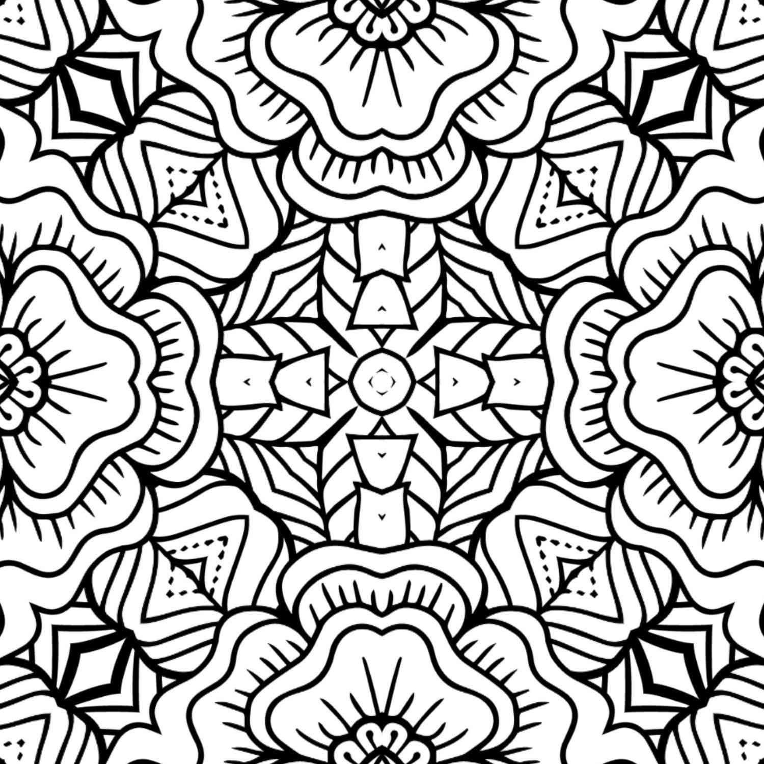 As you expand your creative exploration, you’ll encounter a rich tapestry of interwoven elements. The design transitions seamlessly into striking stylized floral or shell-like forms that dominate the intermediate sections. These shapes are wonderfully detailed, offering ample opportunity for nuanced shading and intricate color choices, allowing you to breathe life into their layered contours. Beyond these, you’ll discover fascinating triangular motifs, each adorned with delicate dots, adding a subtle texture and visual interest that enhances the overall complexity without overwhelming the eye. These elements are arranged in a way that suggests a subtle underlying square structure, providing a sense of grounding and balance amidst the flowing patterns.