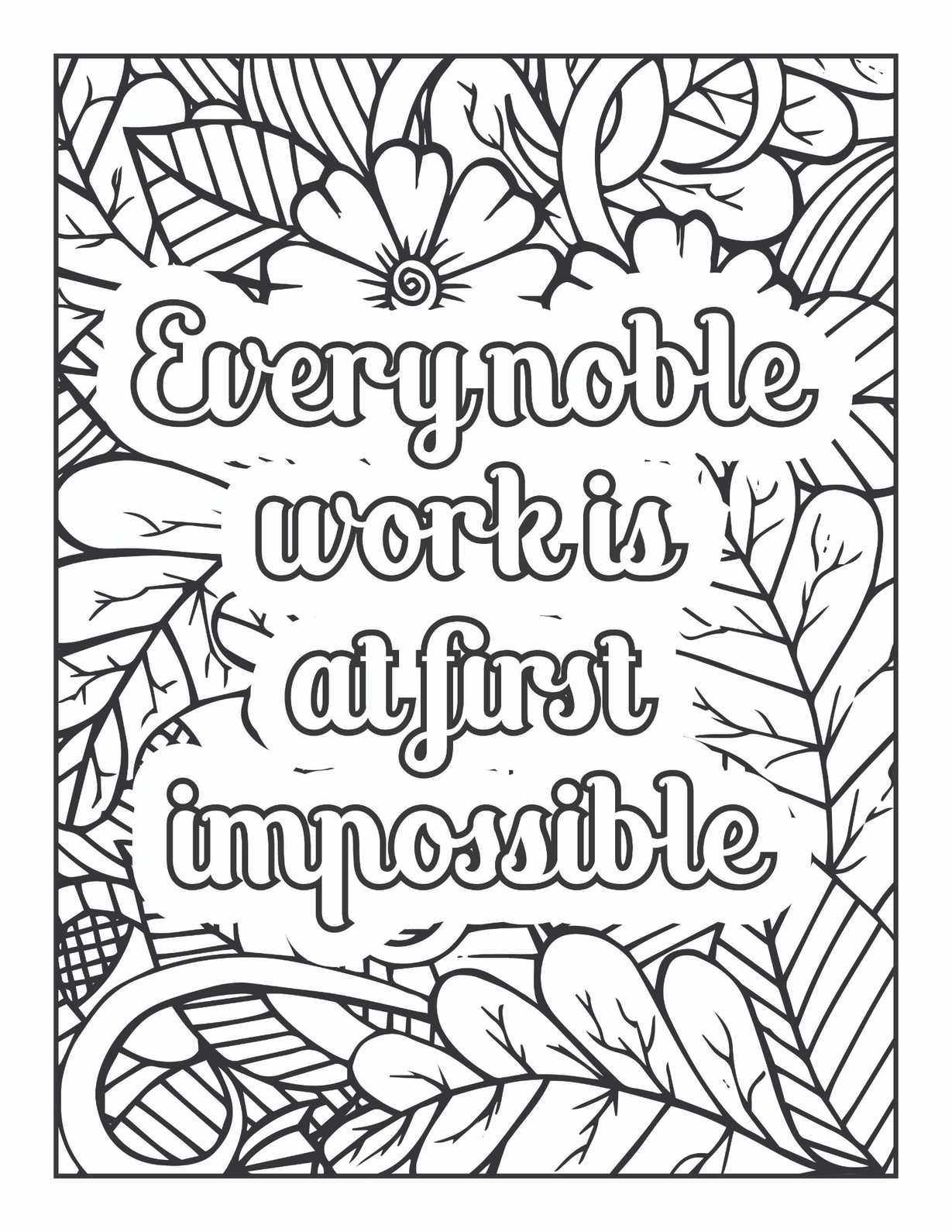 Notice the thoughtful use of negative space within the floral and leaf arrangements. These open areas provide visual breathing room and allow the core message to remain prominent. The overall composition encourages the eye to wander and discover new details with each glance, much like the journey of tackling an ambitious goal. As you fill in the intricate lines with color, allow the quote to resonate and the surrounding flora to inspire a sense of possibility and the natural progression of growth. This mandala serves not only as a creative outlet but also as a visual affirmation, perfect for those seeking motivation and a reminder that even the most “impossible” dreams are attainable through dedication and a step-by-step approach. Let the act of coloring this design be a meditative practice, fostering resilience and the belief in your own capacity to achieve great things, one colorful stroke at a time.