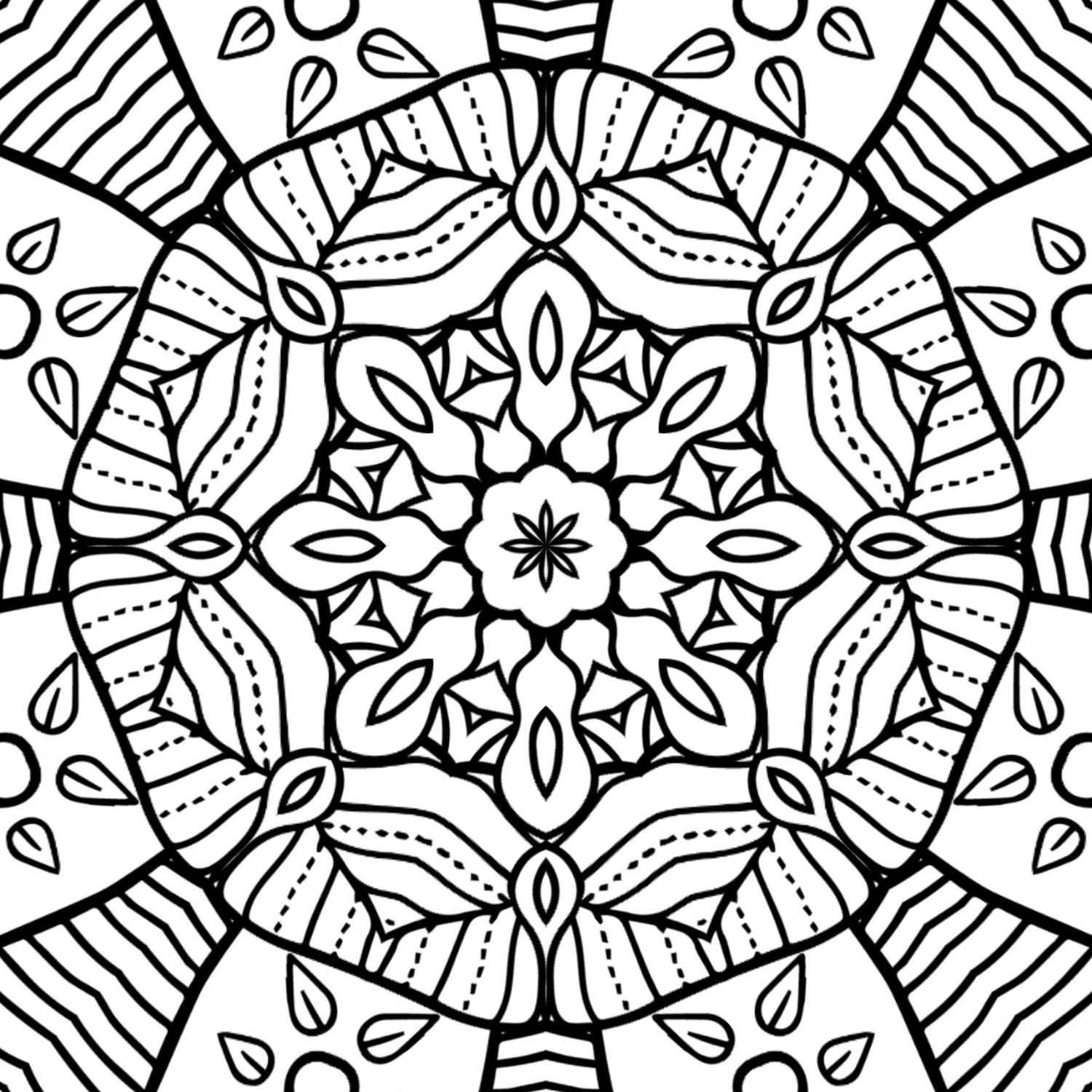 As your gaze moves outward, you’ll discover repeating motifs that playfully combine teardrop shapes, reminiscent of nascent seeds or dewdrops, with beautifully textured leaf-like forms. The thoughtful inclusion of dotted lines within these larger shapes adds a unique tactile quality, inviting you to imagine the subtle veins of a leaf or the tiny textures of a seed pod. The outer ring features bold, radiating lines that provide a strong, grounding frame, contrasting beautifully with the more intricate details within. This interplay of bold and fine lines offers a diverse coloring experience, allowing for both broad strokes of color and meticulous detail work.