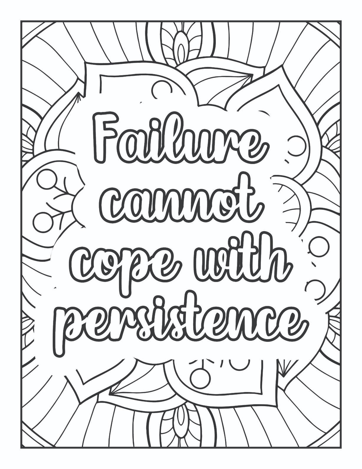 Embrace the power of unwavering determination with our captivating “Failure Cannot Cope with Persistence” mandala coloring page, available for free download. This intricate design isn’t just an artistic endeavor; it’s a daily affirmation, a visual anchor to the profound truth that setbacks are merely temporary detours on the path to success. The core of this piece, prominently featuring the inspiring quote, is framed by a blooming lotus-like motif, its petals unfurling with delicate yet strong lines, symbolizing growth and enlightenment even amidst challenge.