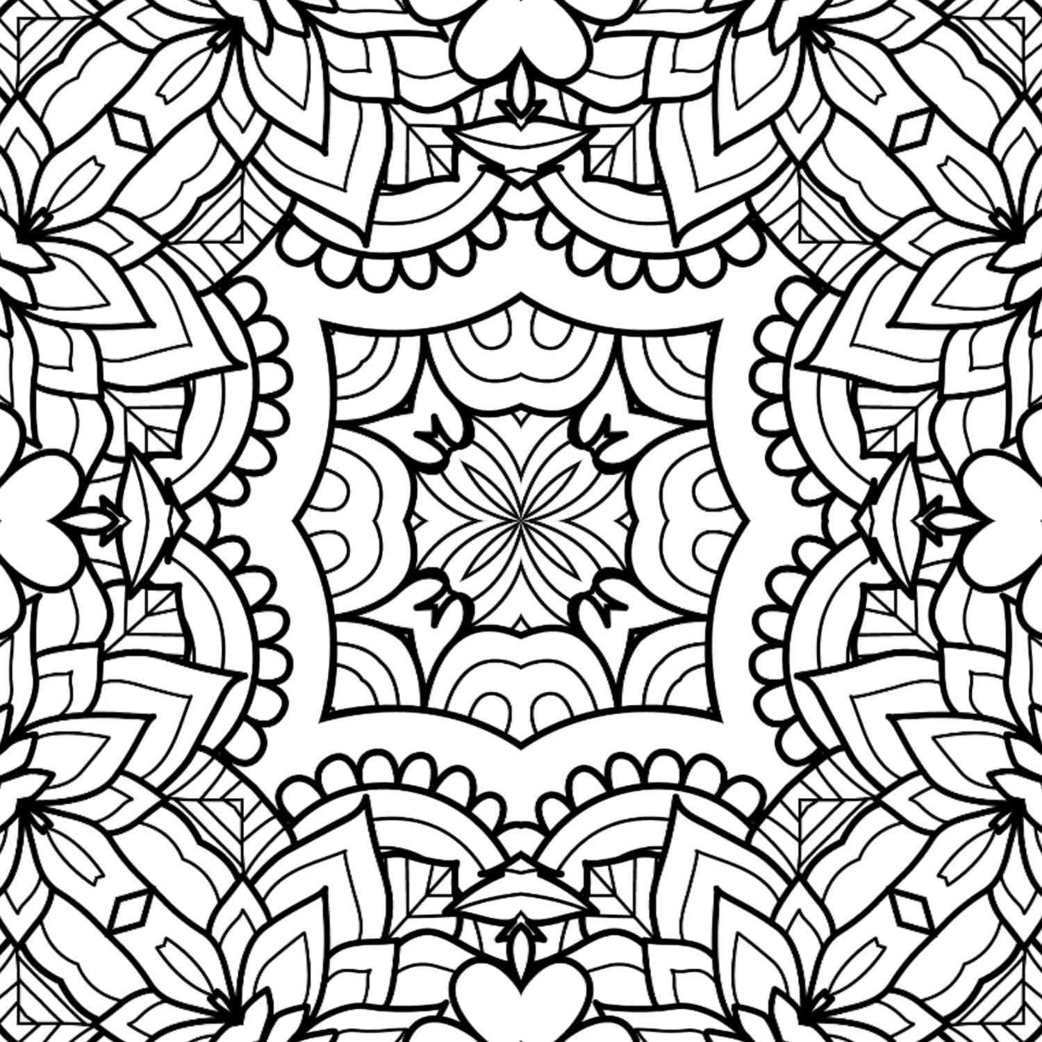 As you move outwards from the core, the design blossoms into layers of exquisite detail. A distinct scalloped border gracefully outlines the inner square, adding a soft, decorative touch that contrasts beautifully with the sharp angles. Beyond this, the mandala expands into a rich tapestry of intricate patterns, featuring elongated, almost leaf-like forms alternating with more abstract, symmetrical shapes. The varying densities of lines and the thoughtful placement of open spaces within the design offer a dynamic coloring experience. You’ll find opportunities for both broad sweeps of color and precise, detailed work, making it suitable for a wide range of coloring styles.