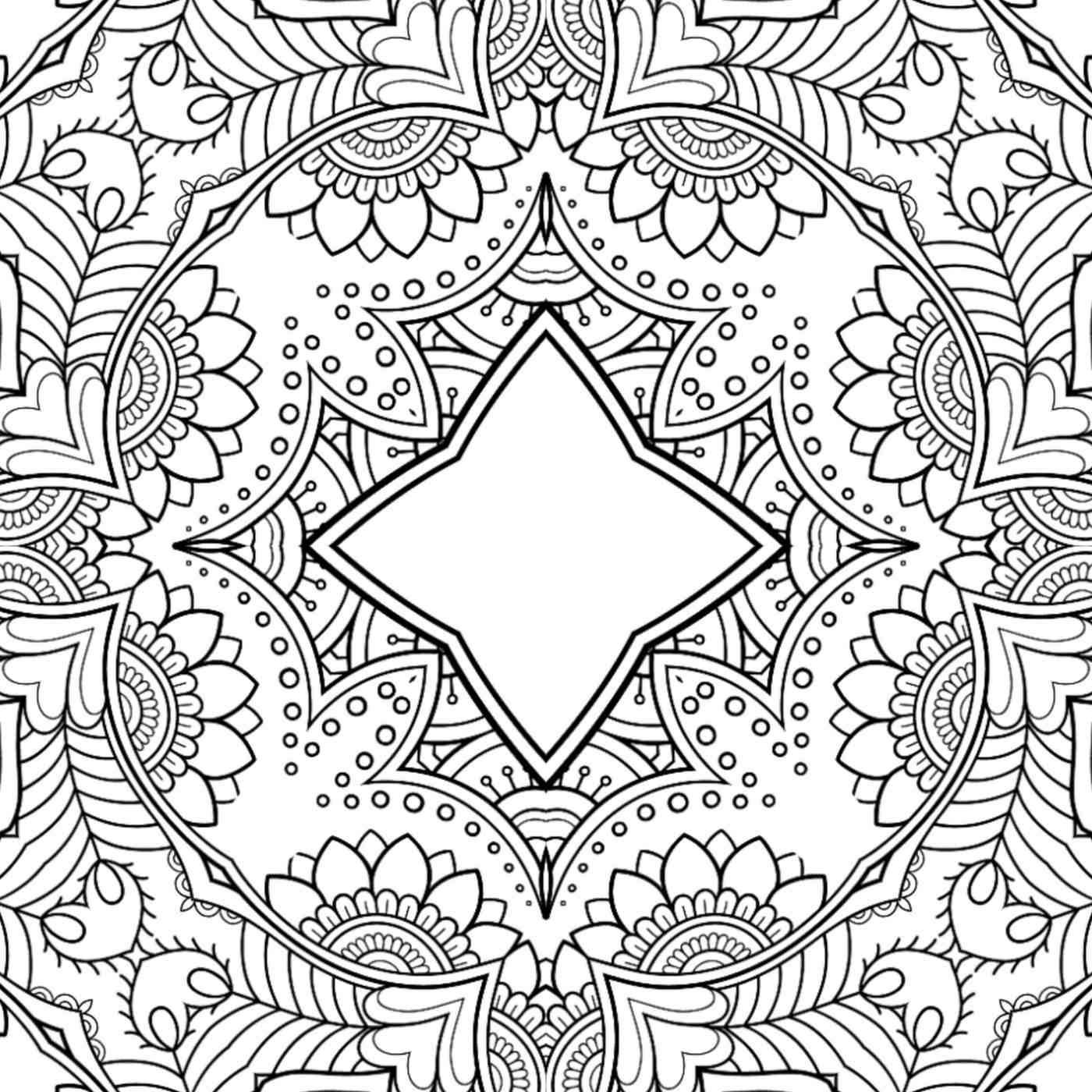 Abstract geometric and floral mandala coloring design with a central diamond shape