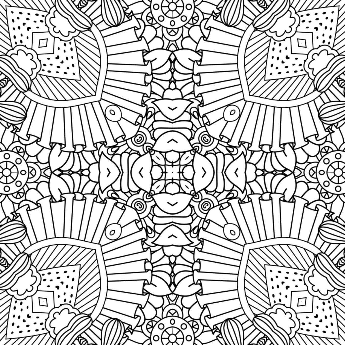 Unravel the captivating complexity of this free downloadable geometric harmony mandala, a design that invites both meticulous attention and profound relaxation. Unlike purely floral patterns, this mandala presents a striking interplay of precise lines, sharp angles, and sweeping curves, all meticulously arranged to create a dynamic yet balanced composition. At its core, the eye is drawn to a central motif of interlocking shapes, hinting at ancient symbols or architectural blueprints. These foundational elements branch outwards, creating a series of symmetrical quadrants, each a unique exploration of form and repetition. Within these sections, you’ll discover fascinating details: fan-like structures radiating outwards, reminiscent of pleated fabrics or sunbursts, juxtaposed with more organic, almost cloud-like shapes.