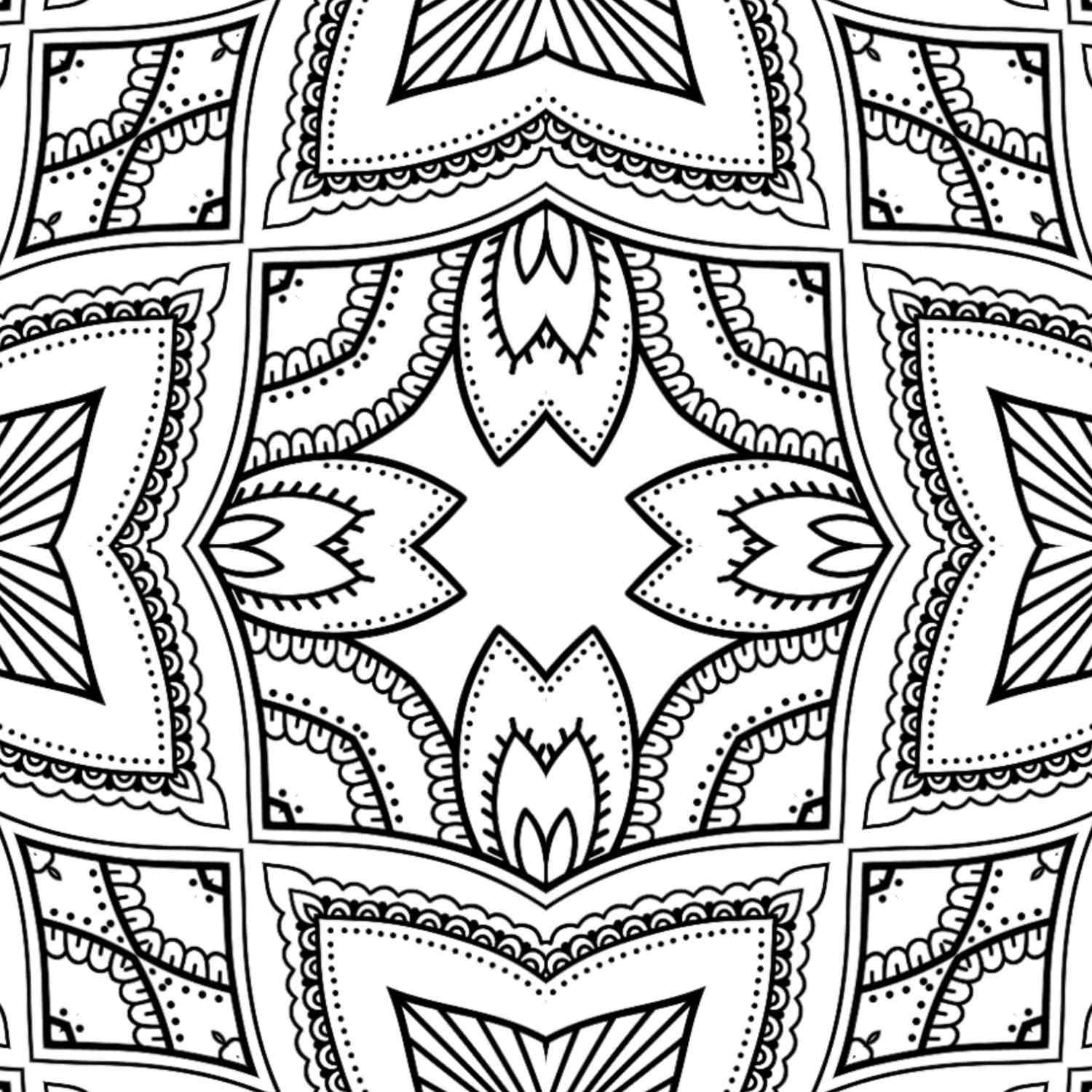 Unleash your inner artist with this captivating geometric lace mandala, now available for free download. This design stands out with its bold, well-defined structure, segmented into four distinct yet harmoniously integrated quadrants. Each section draws the eye inward, featuring a striking, stylized motif that evokes the gentle flicker of a flame or the unfolding of an elegant petal. These prominent elements are beautifully framed by a tapestry of delicate details: intricate dotted patterns that form subtle borders and graceful scalloped edges that add a touch of refined artistry.