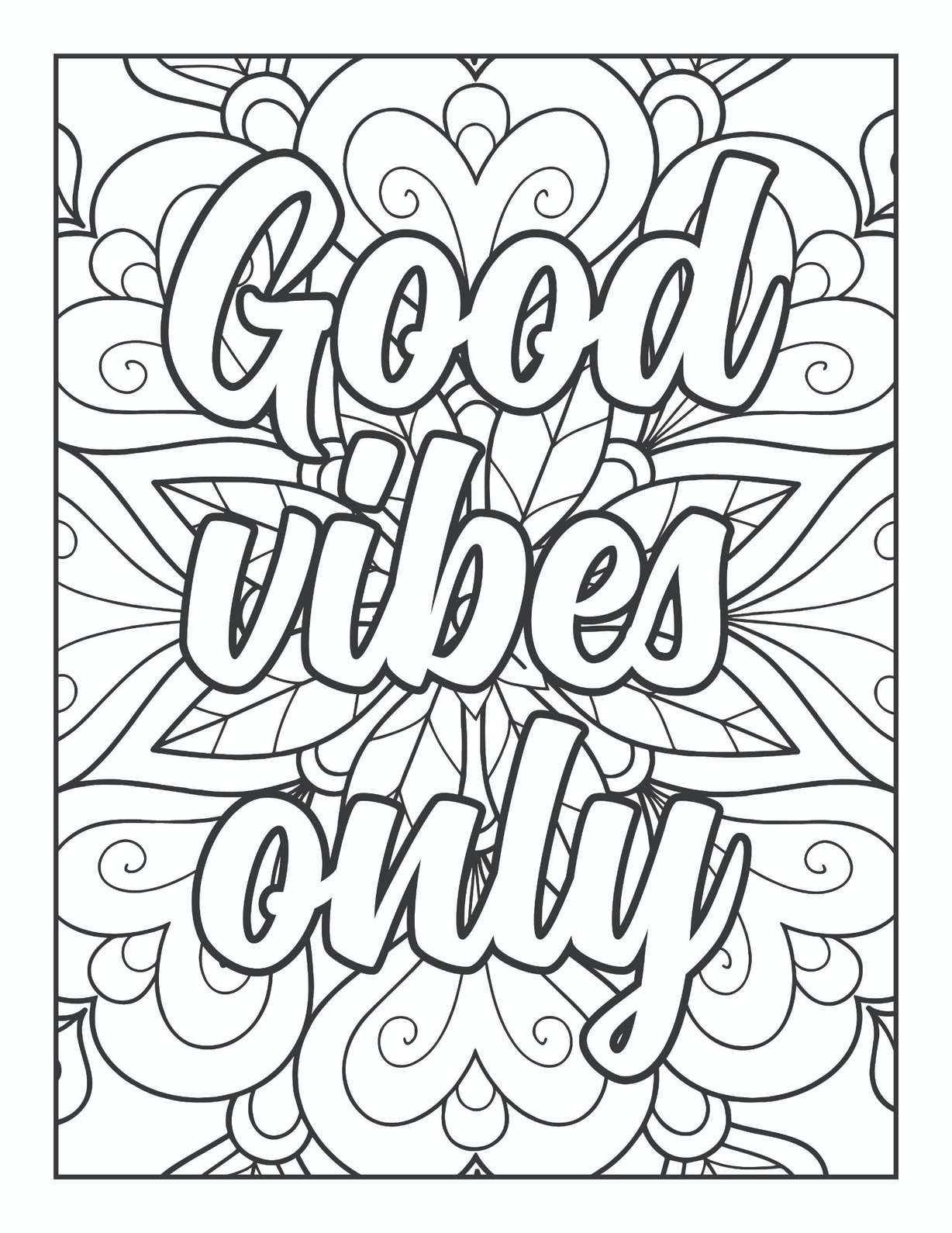 Uplift your spirits and immerse yourself in a world of positive energy with this vibrant “Good Vibes Only” coloring page. This design acts as a visual mantra, encouraging a mindful shift towards optimism and serenity with every stroke of color. The background is a captivating tapestry of patterns, drawing inspiration from both traditional mandalas and the fluid, meditative art of Zentangle. You’ll find a delightful interplay of swirling lines, organic shapes, and repetitive motifs that create a sense of harmonious movement, guiding your eye through the design and inviting deep focus.