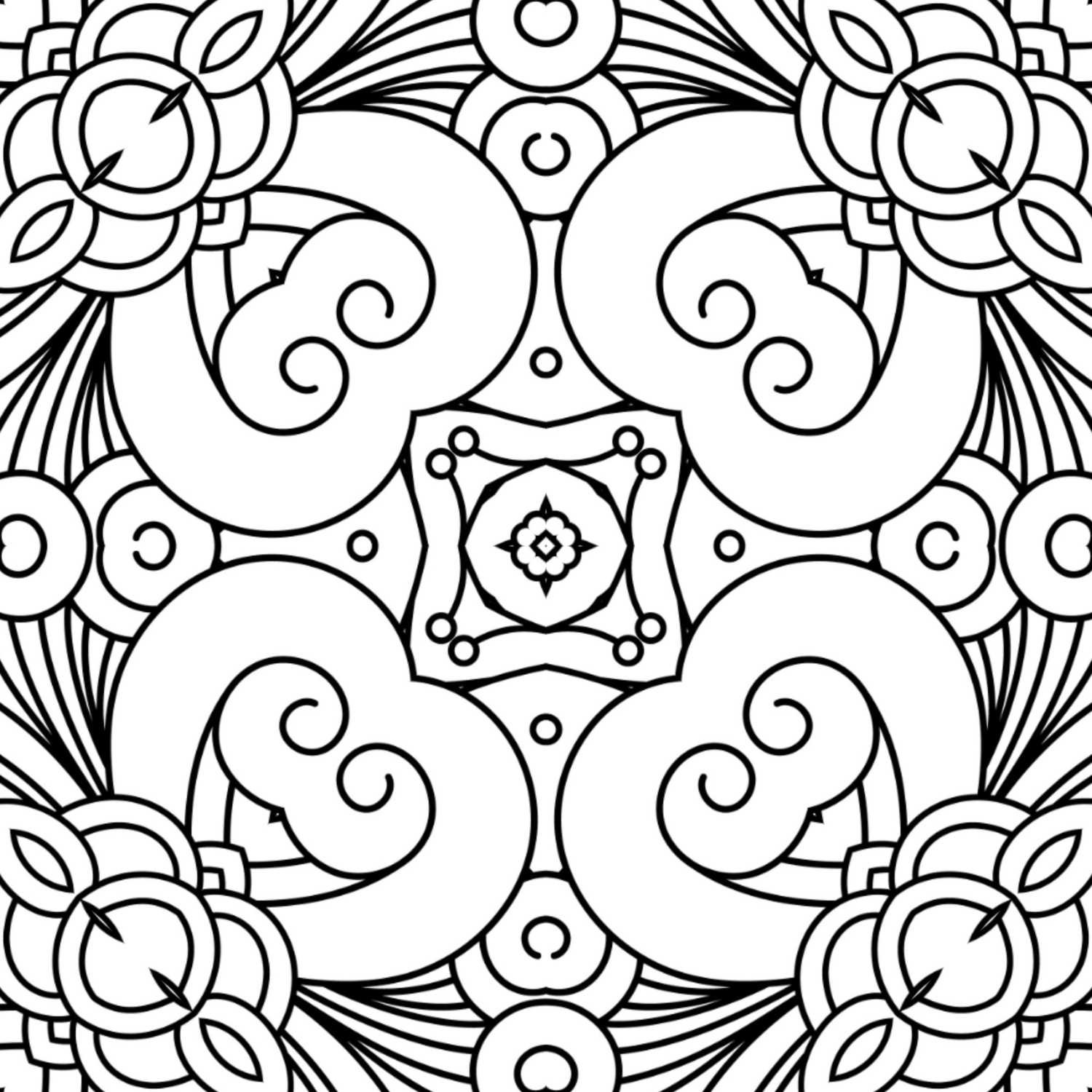 The design is immediately striking due to the four prominent, grand swirls that dominate the central quadrants. Their expansive curves create a strong sense of movement and fluidity, inviting wide strokes of color and opportunities for smooth gradients. These sweeping forms are beautifully complemented by more intricate floral-like clusters positioned in each corner. These clusters feature delicate petals and segmented shapes, providing a wonderful contrast to the larger swirls and offering spaces for meticulous detail work. The interplay between these major elements and the numerous smaller circles and lines scattered throughout creates a rich texture that continuously reveals new patterns as you observe it.