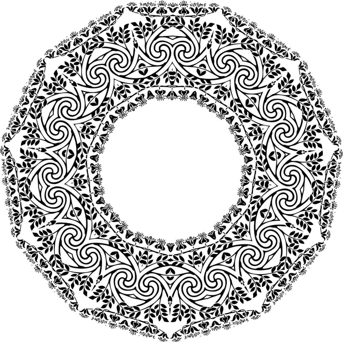Immerse yourself in the timeless elegance of this Intricate Celtic Vine Mandala Frame, now available for your complimentary download. This unique design distinguishes itself by offering a captivating circular border, meticulously crafted with flowing organic patterns that echo traditional Celtic knotwork and natural motifs. At its very center lies a generous open space, designed to be a canvas for your own creativity – whether for writing a meaningful quote, adding a personal drawing, or simply leaving it as a calming void. The intricate frame itself is a symphony of swirling vines, delicate leaves, and repeating stylized elements that create a continuous, mesmerizing flow. The fine details and repetitive nature of the patterns around the border invite a deeply focused and meditative coloring experience.