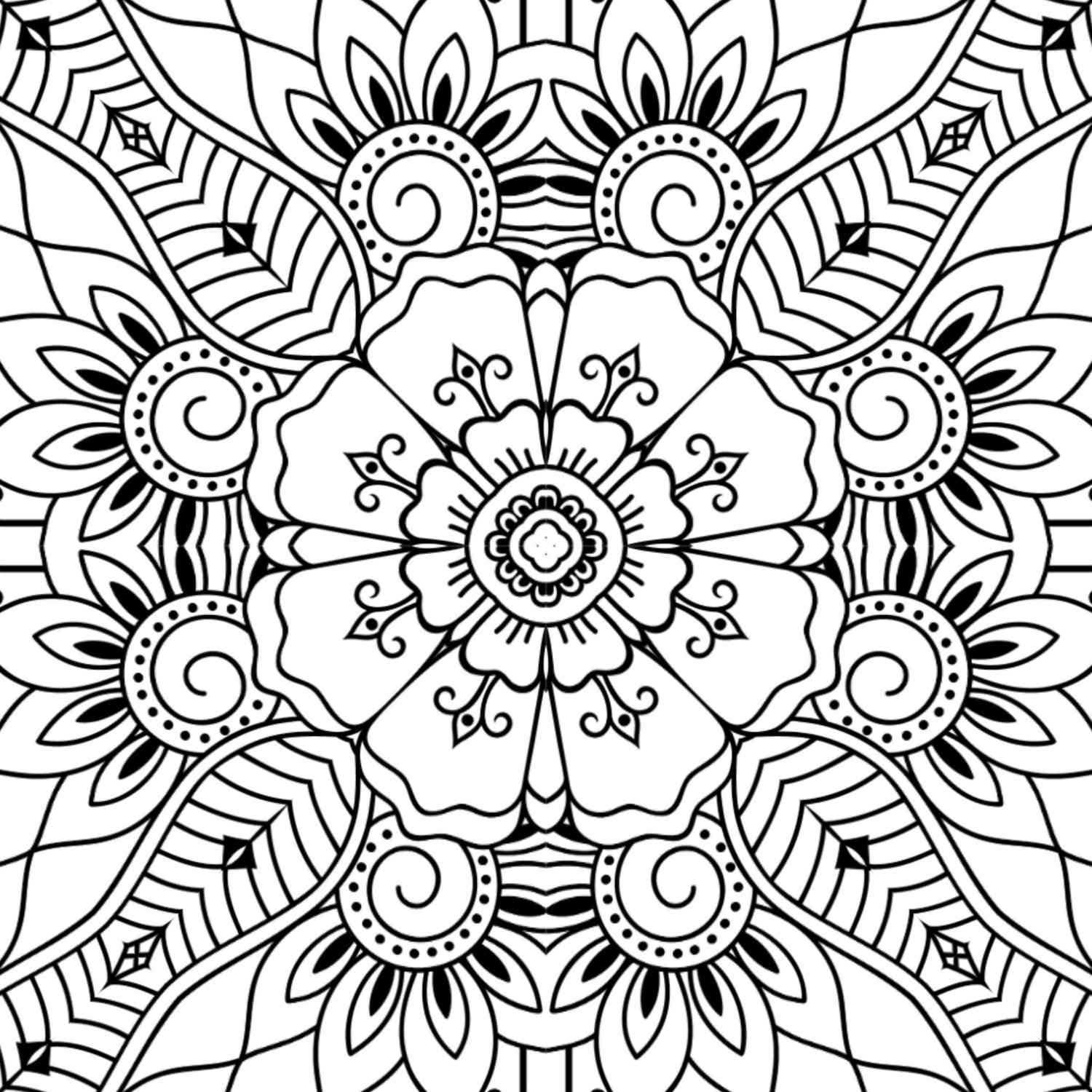 Delve into the exquisite artistry of our “Intricate Petal Bloom Mandala,” a design that promises a rich and deeply engaging coloring experience. This square mandala is a testament to meticulous detail, featuring a central floral motif of captivating complexity. At its core, a multi-layered flower with a distinct stamen pattern expands outwards, its delicate petals beautifully adorned with subtle dots and elegant swirls. Surrounding this focal point, four larger, gracefully contoured blossoms emerge, each petal meticulously outlined and filled with its own unique sub-patterns, creating a sense of unfolding beauty. The outer quadrants of the mandala are a symphony of fine lines, intricate swirls, and stylized leaf forms, all woven together in a seamless tapestry of design. What truly sets this mandala apart is the harmonious interplay of dense patterning and open spaces, offering a diverse range of areas for both precise, detailed coloring and broader artistic interpretation. It’s a design that reveals new subtleties with every glance, inviting a prolonged and rewarding engagement.
