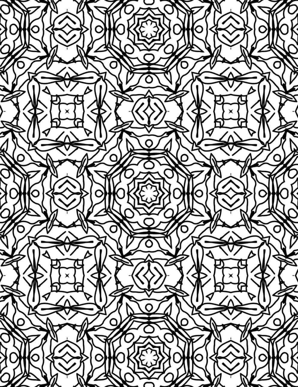 The ‘Star Blossom’ mandala is a captivating testament to intricate design and mesmerizing repetition, offering a visual journey that feels both expansive and deeply focused. Unlike simpler patterns, this design immediately draws you into its sophisticated network of interconnected elements. Each primary motif features a radiant multi-pointed star at its heart, surrounded by layers of delicate petals, intricate lozenges, and elegant curved forms that seem to spin outward with dynamic energy. Interspersed within this larger framework are fascinating square-like constructs, adorned with smaller, precise details and subtle cross patterns, acting as elegant bridges between the more dominant circular sections. The interplay of bolder lines defining the main structures and finer lines creating internal textures provides ample opportunity for nuanced coloring, inviting you to explore shading, gradients, and contrasting hues. This mandala is a true kaleidoscope of pattern, demanding attention and promising a highly rewarding artistic endeavor.