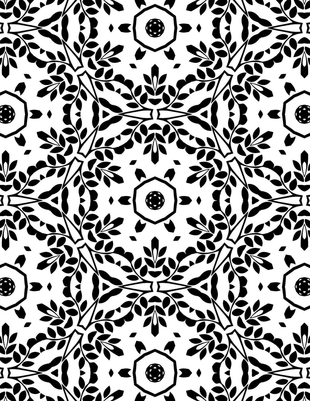Immerse yourself in the calming embrace of the “Nature’s Embrace” mandala, a captivating design that beautifully intertwines organic fluidity with structured harmony. This particular mandala stands out with its intricate portrayal of delicate leaves and branching tendrils, all meticulously arranged within a symmetrical framework. Unlike some mandalas that lean heavily into geometric rigidity, “Nature’s Embrace” offers a softer, more inviting aesthetic, drawing inspiration directly from the natural world. Each segment of the design mirrors a flourishing botanical cluster, creating a sense of growth and gentle movement. The monochromatic palette of stark black on white accentuates the fine details, inviting a closer look and promising a deeply satisfying experience for those who choose to engage with it. The central hexagonal motifs, subtly interspersed throughout the design, act as grounding points, providing a gentle contrast to the flowing organic elements and adding an intriguing visual rhythm.