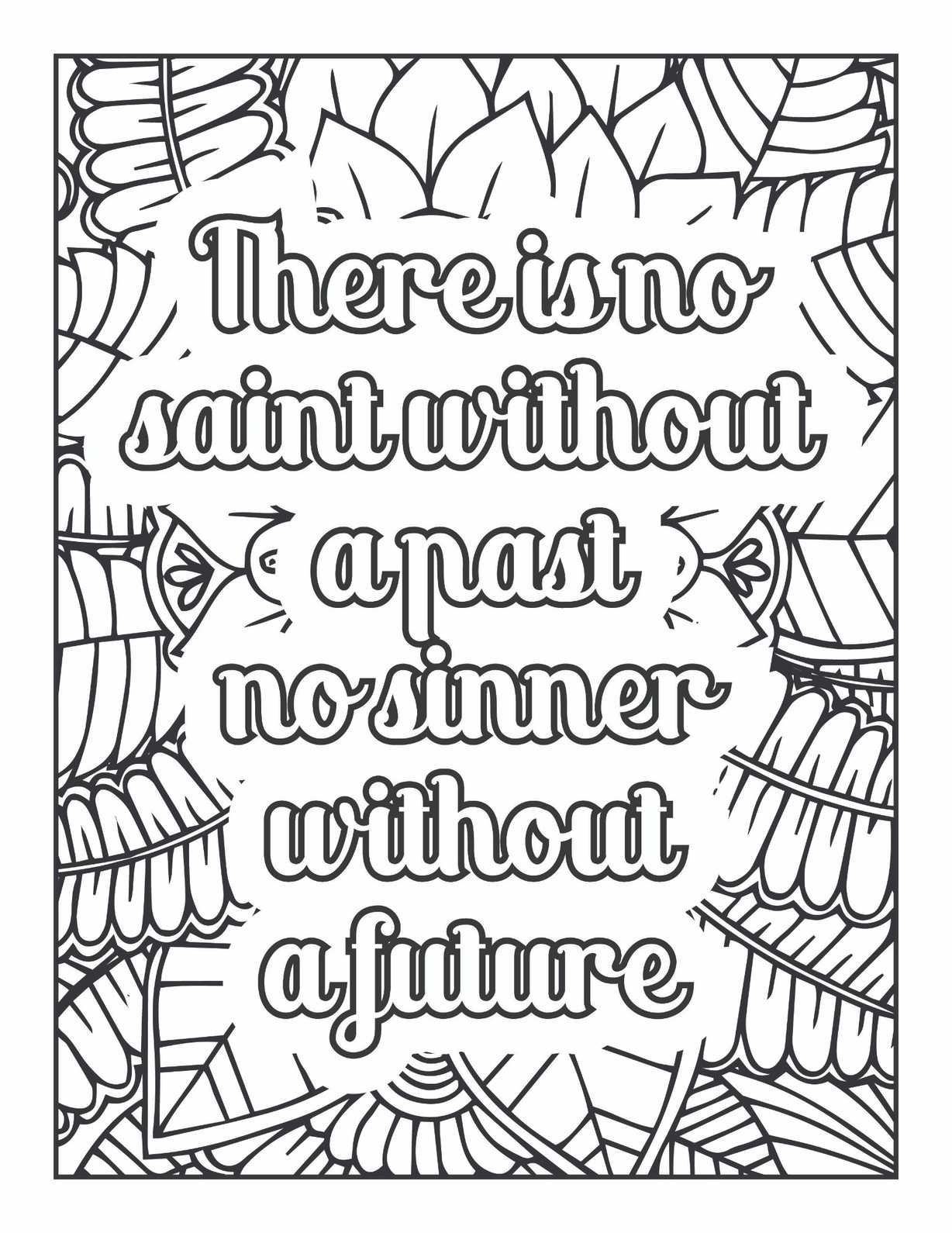 Embark on a journey of mindful reflection and creative expression with our unique “No Saint Without a Past” inspirational quote coloring page. This isn’t just another coloring sheet; it’s an invitation to contemplate a profound truth while engaging in the therapeutic art of coloring. The central message, “There is no saint without a past no sinner without a future,” serves as a powerful reminder of human complexity, growth, and redemption. It’s a message that resonates deeply, offering comfort and hope, making this page ideal for personal reflection, journaling, or as a thoughtful gift.