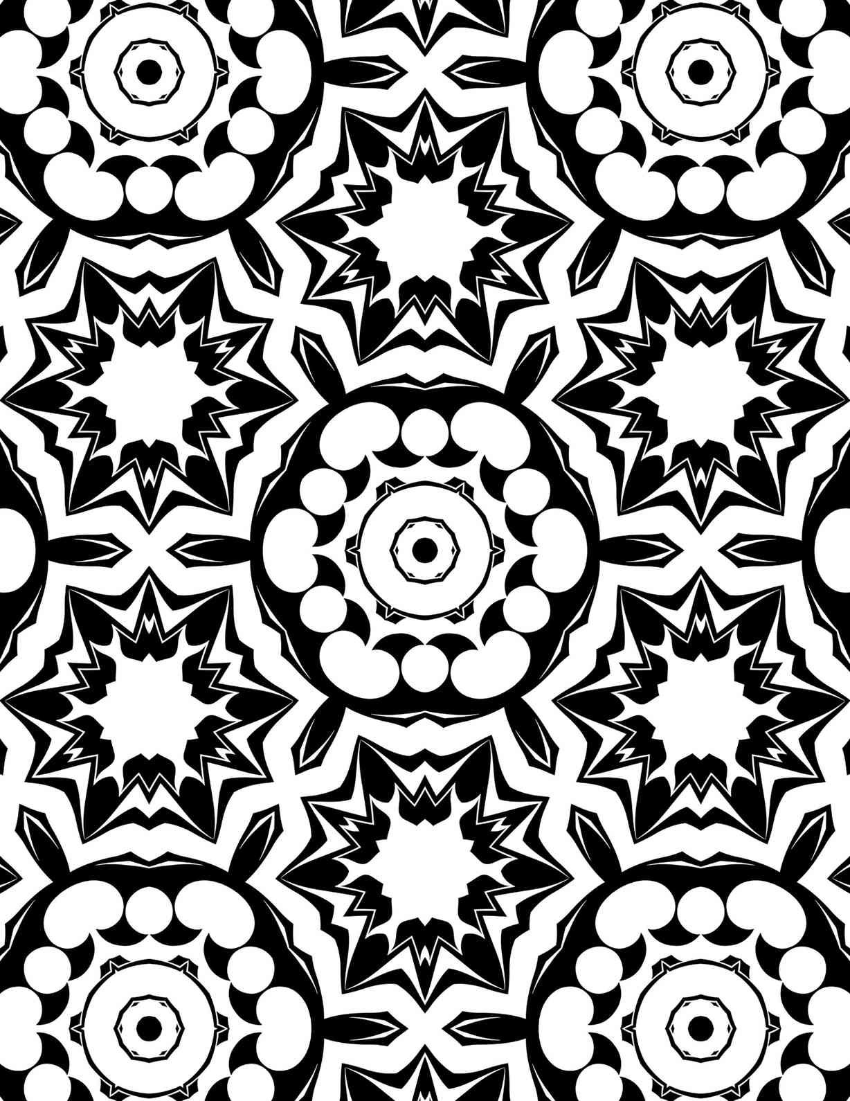 This mandala is perfect for those who want more from their coloring or mindfulness experience. With its forceful shapes and bold outlines, it offers an invigorating alternative to more passive designs. Whether you’re looking to relax through creative work or simply want to decorate your space with a burst of black-and-white brilliance, this pattern delivers.