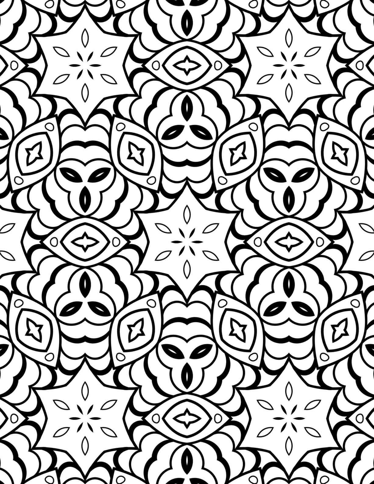 This beautiful mandala design unfolds like a delicate tapestry woven from petals and starlight, inviting a peaceful journey into its intricate details. The pattern is characterized by its continuous, undulating flow, where each central motif seems to seamlessly give way to the next. At the heart of the design are distinctive, almost clover-like or heart-shaped elements, which are gracefully framed by sweeping, scalloped outlines. These primary shapes are often surrounded by layers of concentric curves, creating a wonderful sense of depth and dimension, as if petals are unfurling before your eyes.