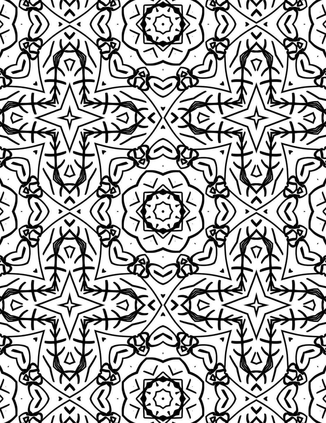 The “Interwoven Journey Mandala” offers a captivating visual experience, distinguished by its unique blend of flowing, almost calligraphic curves and precise, geometric star forms. This design doesn’t adhere strictly to one style; instead, it playfully combines elements, creating an organic yet structured complexity. Prominent eight-pointed stars emerge as focal points, their sharp angles providing a strong anchor. However, what truly sets this mandala apart are the unusual, almost “drawn” or hand-sketched lines that flow between and around these stars, forming intriguing loops, subtle heart-like shapes, and elongated, abstract connections. These lines aren’t rigidly geometric; they possess a fluid quality that suggests movement and exploration, inviting the eye to follow their winding paths. The contrast between the crisp stars and the softer, more spontaneous curves gives the mandala a dynamic tension and a distinctive personality. It feels like a visual narrative, with each segment unveiling a new, interconnected detail.