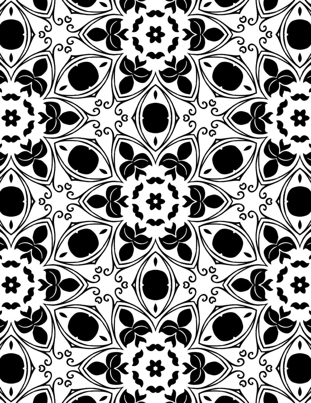 Step into a world of symmetrical beauty and calming intricacy with this exquisite mandala design. At first glance, your eyes are drawn to the central motif – a delicate blossom, its petals unfurling in a mesmerizing pattern. This isn’t just a collection of lines and shapes; it’s a carefully crafted visual journey, inviting you to explore its depths. The design features an array of stylized floral elements, reminiscent of lush garden blooms. Each petal and leaf is rendered with a flowing elegance, creating a sense of organic movement within the geometric structure. Swirling tendrils and gracefully curved lines weave between the primary floral components, adding layers of detail and a subtle, almost rhythmic complexity. The contrast of solid black against crisp white enhances the visual impact, highlighting the meticulous artistry of the design and making it incredibly appealing for creative exploration.