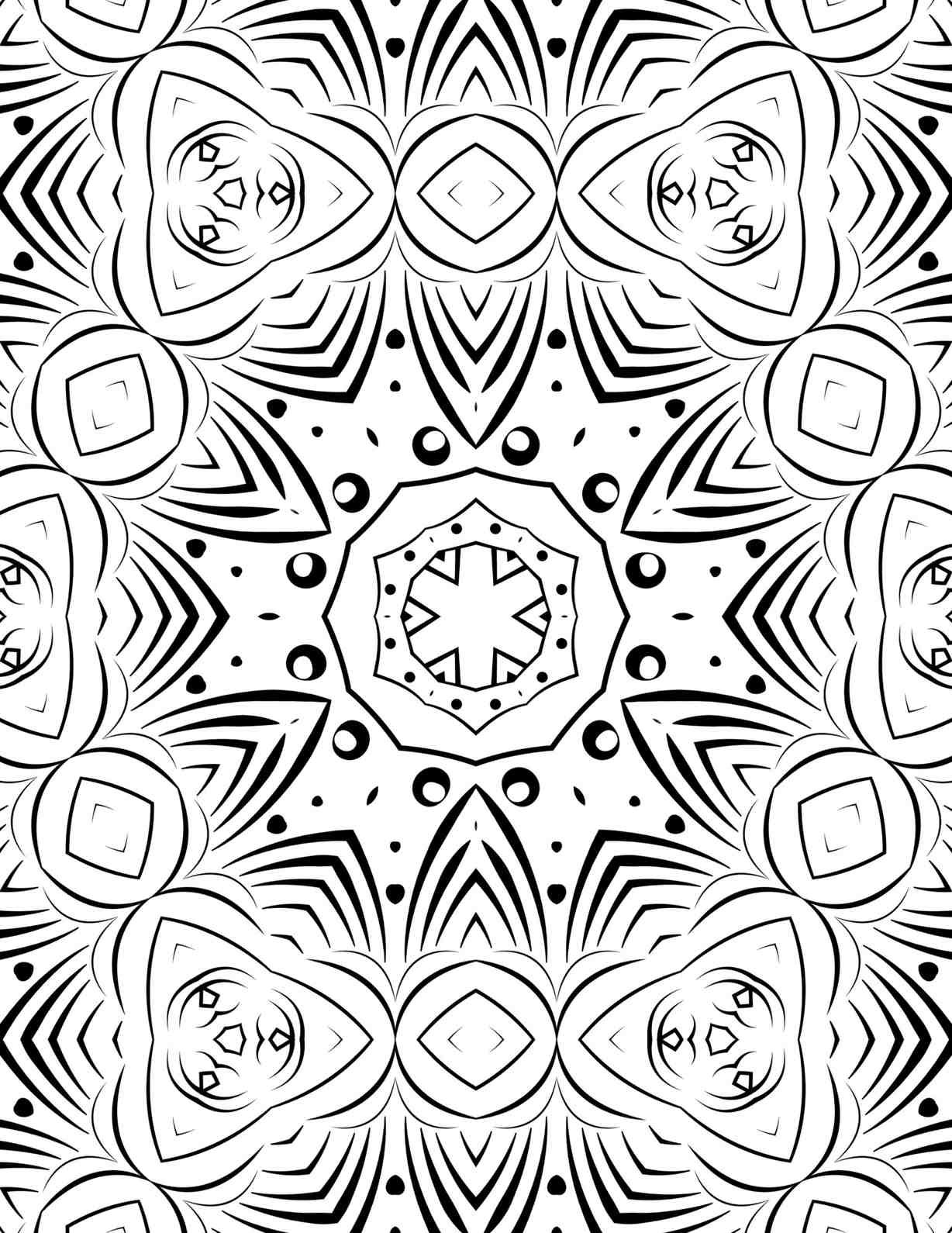 Beyond the immediate center, the design blossoms with a series of petal-like forms, each composed of finely drawn lines that converge and diverge, creating a sense of dynamic movement. These “petals” are interspersed with intriguing eye-shaped elements, lending a slightly mystical or watchful quality to the overall pattern. The repetition of these shapes in a harmonious radial arrangement is not merely decorative; it’s a testament to the meticulous craftsmanship embedded within the design. The bold, crisp black lines against the stark white background provide a striking contrast, making it an ideal canvas for vibrant color exploration. The balance between solid forms and delicate lines ensures that while the design is complex, it never feels overwhelming, maintaining a sense of open space for personal interpretation.