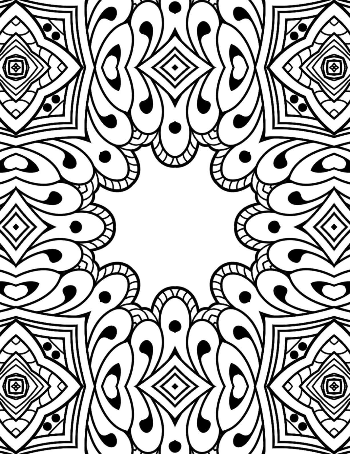 Beyond this floral embrace, the design transitions seamlessly into four prominent corner sections. These areas showcase a more angular, diamond-patterned motif, providing a delightful contrast to the softer curves. Within each diamond, smaller squares and circles create a sense of depth and intricate detail, ensuring that every glance reveals a new element to explore. The bold, clean lines of this mandala make it incredibly versatile, presenting both larger areas for sweeping color application and smaller, more complex segments for precise shading and intricate detail work. This balance makes it an ideal choice for both beginners seeking a calming entry into mandalas and experienced colorists yearning for a rewarding challenge.