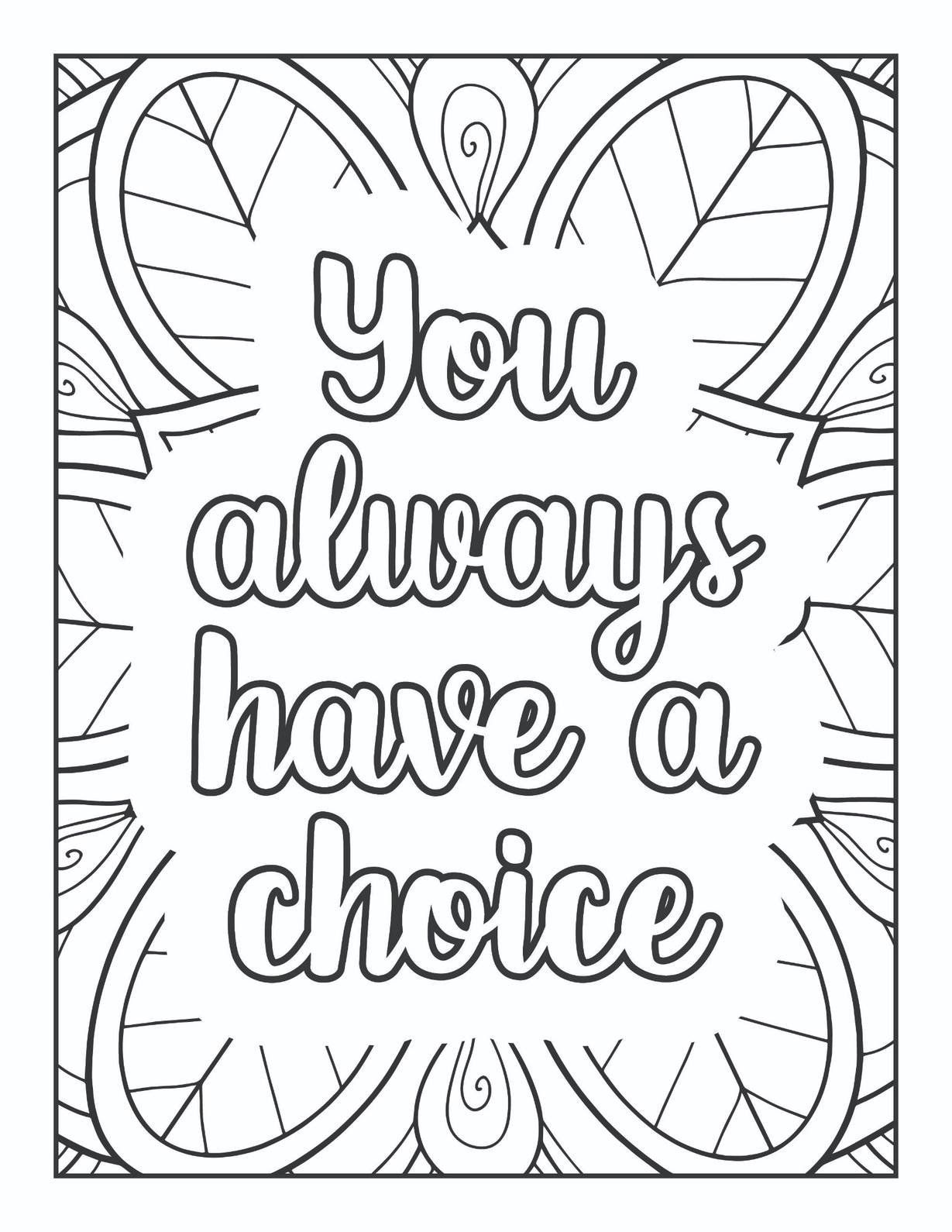 Discover empowerment and self-reflection with our free printable “You Always Have a Choice” inspirational mandala coloring page. This design serves as a gentle yet powerful reminder of the autonomy we possess in every moment, encouraging a mindset of conscious decision-making. The central message, penned in a flowing, inviting script, is nestled within a dynamic border that elegantly blends organic and geometric forms.