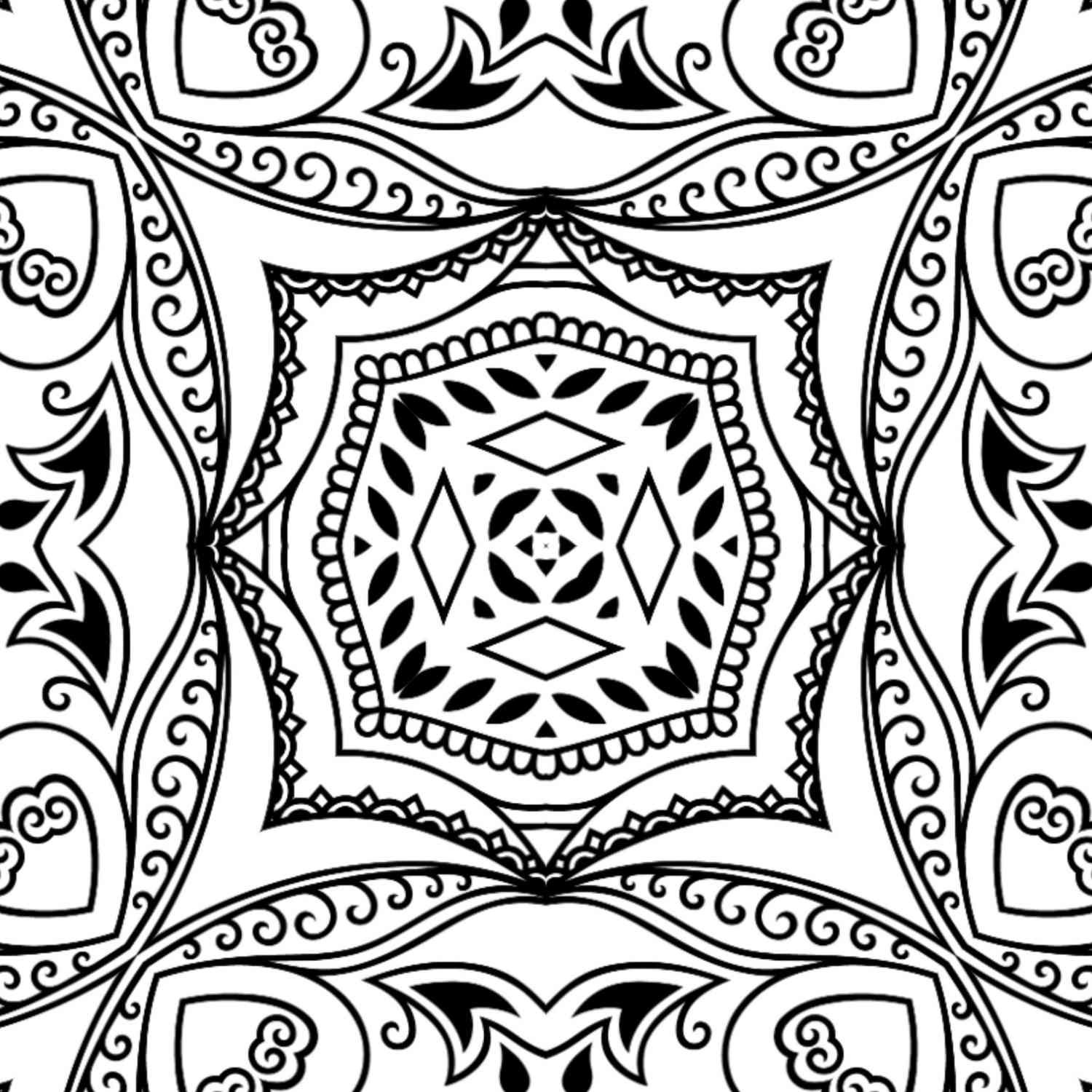 At its heart, the “Zen Bloom Mandala” features a mesmerizing central hexagon, richly adorned with diamond shapes and delicate leaf-like elements. This core expands outwards, transitioning seamlessly into a series of curvilinear forms that evoke the gentle unfurling of petals or the graceful sweep of vines. The recurring scrollwork and teardrop shapes along the outer edges add a layer of sophistication, reminiscent of traditional ornamental artistry. Each curve and line has been thoughtfully placed, contributing to a harmonious overall composition that is both complex and incredibly satisfying to the eye.