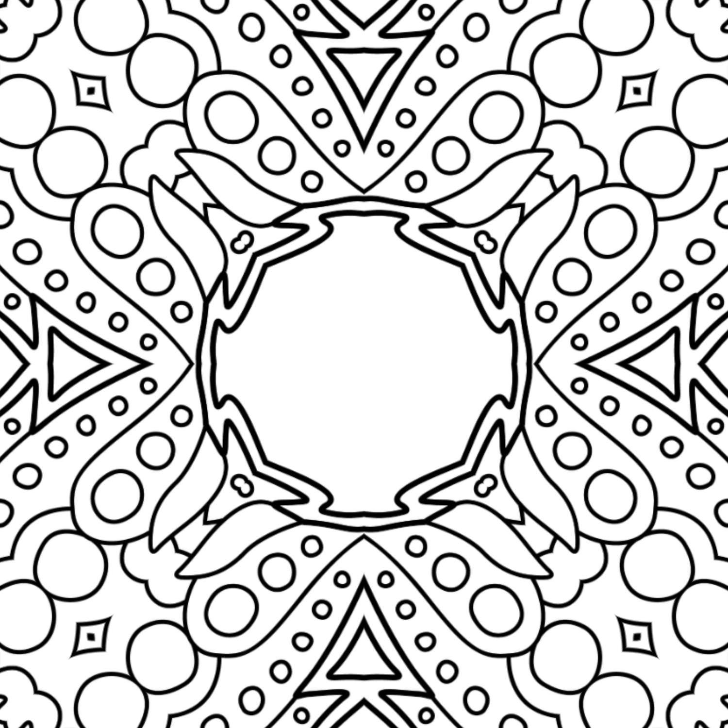 Geometric and organic Zen Portal mandala coloring page, free printable for focus, relaxation, and artistic mindfulness.